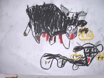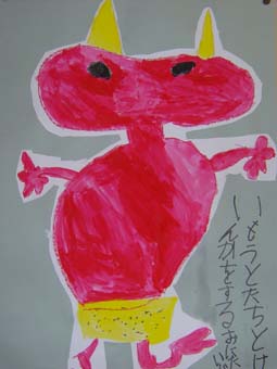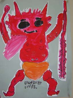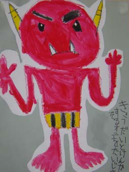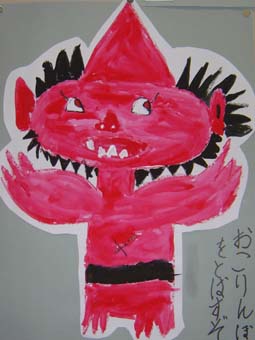 2月3日(火)は、節分。みんなの心の中にいるオニをやっつけようと、オニの絵を描きました。どんなオニがいるのかな。兄弟げんかをしてしまうオニ。寝坊をするオニ。好き嫌いをしてしまうオニ。いろいろなオニがいるけれど、2年生になるまでには、そんなオニがいなくなるといいね。