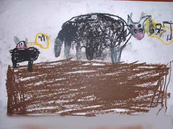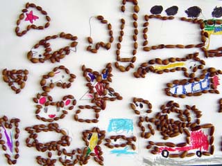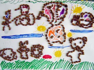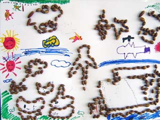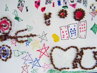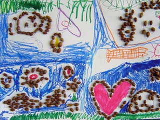 秋を探しにグリーンセンターに行きました。その時、ひろったドングリを使ってみんなで絵を描きました。