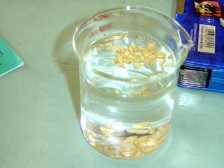 水100g対して食塩13gをとかした塩水(比重1.13)に種もみを入れて待ちます。