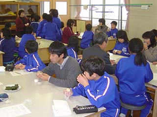 どのようにしてお米を作ってきたか,苦労したことは,…子どもたちと語らいながらの楽しい試食会でした。 |